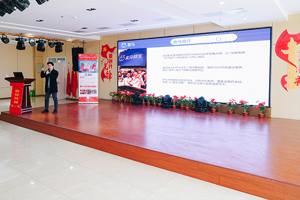 企宣会开始,负责人通过PPT给大家介绍盒马企业品牌,盒马是我们耳熟能详的阿里巴巴集团旗下,以数据和技术驱动的新零售品牌,负责人介绍,盒马希望能为消费者打造线上线下一体化,满足更加丰富和多元化消费需求的社区生活中心。