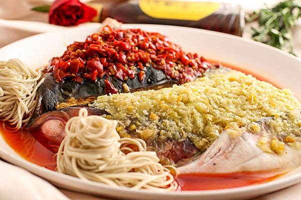 剁椒鱼头是湖南省的传统名菜,属于湘菜系。据传,起源和清代文人黄宗宪有关。菜品色泽红亮、味浓、肉质细嫩。肥而不腻、口感软糯、鲜辣适口。