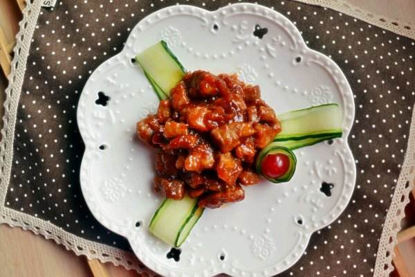 8.把肉反过来装盘,然后淋入浓稠的汤汁,就是一道好看又完美的樱桃肉。