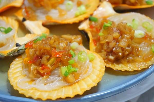 9、后把炒锅烧热,倒入少许食用油,趁着油没热的功夫把葱花、红椒粒分别撒在每一个扇贝上,然后把烧烫的热油均匀的淋在上面就大功告成啦。