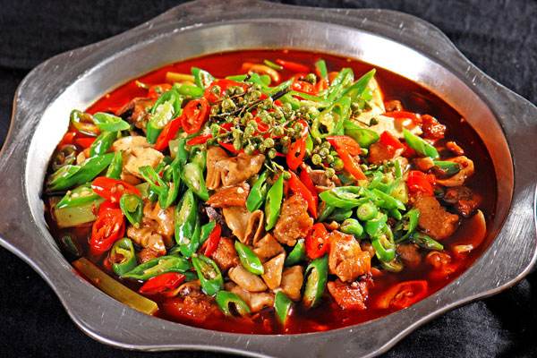尖椒肥肠是四川达县的一道特色小吃,出锅后的的尖椒肥肠香脆鲜嫩,微辣爽口,色、香、味俱全。是许多爱喝酒男士的下酒菜。香辣爽口。
