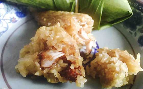 主料:糯米、五花肉、咸蛋黄、粽子叶。