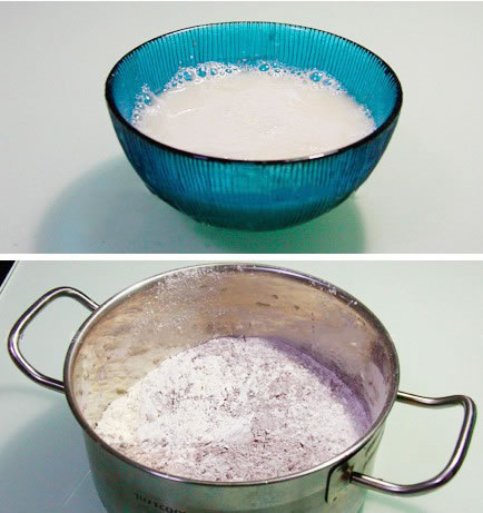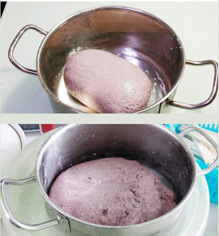 2.发酵粉用温水融化,不要太烫,温的就可以了,然后用温水去和混合好的黑米面